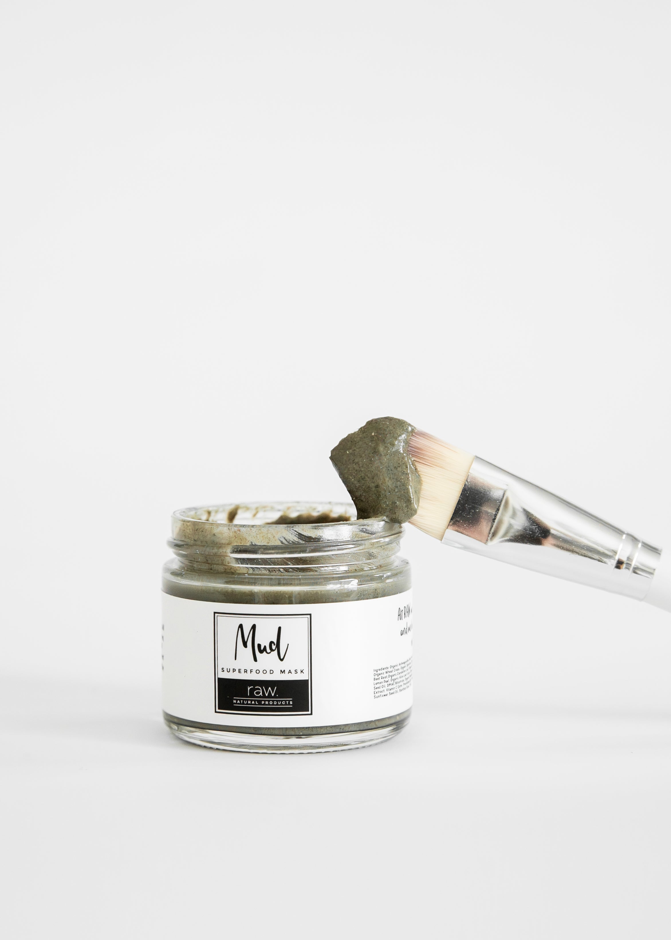 For best results, use Mud along with our entire Raw Facial Care System. Apply Mud Superfood Mask to a freshly cleansed and exfoliated face. Use about 1 tsp per mask. For easy and smooth application, apply with the Raw Mud Mask Brush. Leave mask on for about 20-30 minutes or until dry. Then Cleanse the mask away and follow with your favorite Raw products as you normally would.